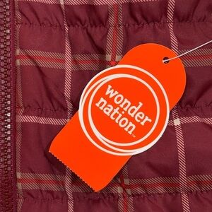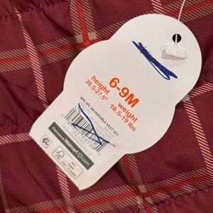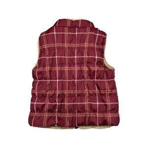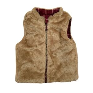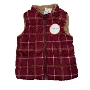 NWT Wonder Nation Reversible Maroon Tan Plaid Faux Fur Puffer Vest - Size 6-9M
