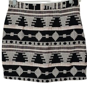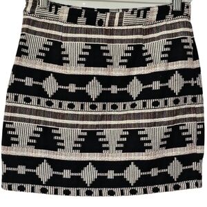 Esley Ethnic Pattern Woven Mini Skirt, black, white and multi color