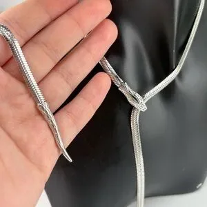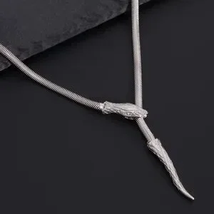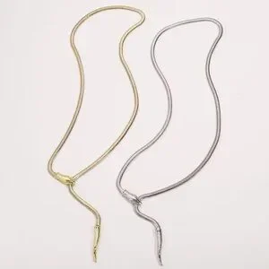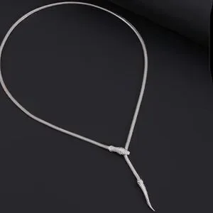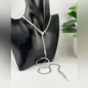 Silver Snake Lariat Necklace – Adjustable Y-Necklace Statement Chain