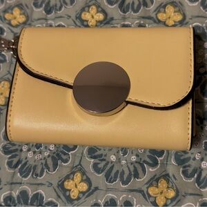 BCBGeneration yellow leather wallet/wristlet w/clip, NWOT.