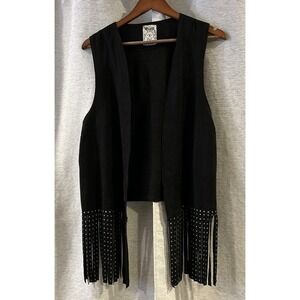 Vocal Fringe Vest Womens M Black Western Boho Goth Emo Eyelet Detail Festival