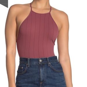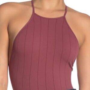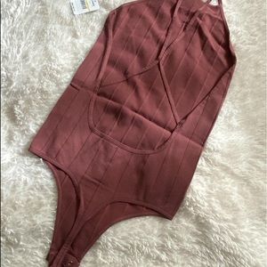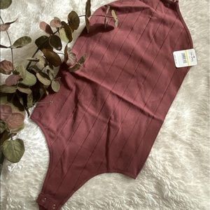 Free People Wine Thong Cut Strap Back Bodysuit Top NWT