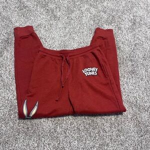 Looney Tunes Graphic Jogger Sweatpants Bugs Bunny Tweety Maroon medium classic