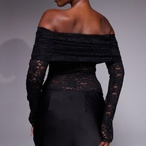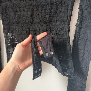 *PRODUCT PHOTOS ARE NOT EXACT! just super similar style to show the fit, size M sheer lace everywhere except the bandeau bikini area. fold over fabric and long sleeves. great condition!!
