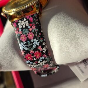 Betsey Johnson Women's Floral Graphic Printed Leather Watch with Rhinestone Bezel. This is such a colorful watch - it will go with any outfit!! And there is circle of rhinestones to give it a bit of bling!! The band is adjustable. The watch face is also covered with flowers! MSRP $85!