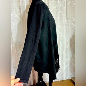 INC International Concepts Black women’s M Faux-mole skin fringe long sleeve