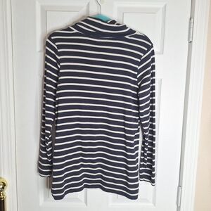 L.L. Bean Navy Blue Striped Cowl Neck Sweater Size Medium