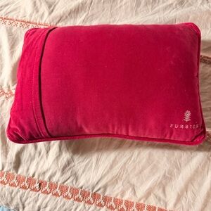 Charming decorative pillow featuring monkeys and a playful quote. Vibrant pink and purple accents. furbish pillow