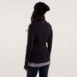 We love to hang on to that post-yoga high for as long as possible after class. This tight-fitting jacket was designed with a cozy collar to help cocoon us in our warm fuzzies so we can stay blissed out on the walk h'ommmmm.