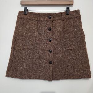 Loft Wool Blend Button Skirt Womens Size 8 Brown Tweed A-Line Fall Academia