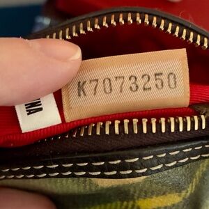GUC - Vintage Madras ladybug plaid coated canvas handbag with dark chocolate colored leather trim and gold-tone hardware. By Dooney & Bourke.