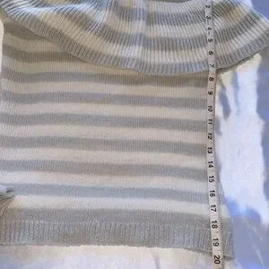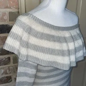 ROMEO & JULIET COTURE One Shoulder Stripe Sweater Gray & Winter White Size M. Vintage Y2K Cream Striped Cottagecore Coquette Off Shoulder Sweater