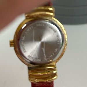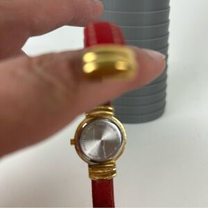 Chic Gold-Tone and Red Women's Quartz Bangle Band Watch (possibly Avon)