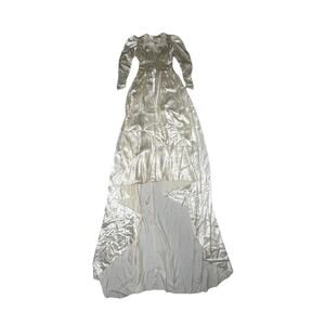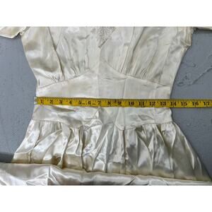 Vintage 40s Ivory Liquid Satin Wedding Dress Train Beaded Bodice Size Small