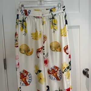 TropicalPants #ResortWear #VacationStyle #CoastalChic #SummerOutfit #WideLegPants #SilkyPants #PatternedPants #FruitPrint #LobsterPrint #BoldFashion #StatementPants #MediterraneanStyle #BrunchOutfit #TravelWardrobe #BeachStyle #DesignerInspired #ColorfulClothing #BohoChicStyle #PoshmarkFinds