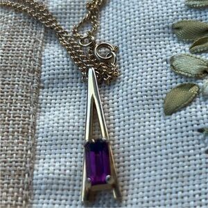 features a stunning purple pendant set in a sleek gold design.