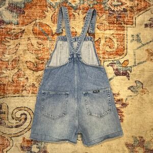 ROLLAS Womens Denim Shortall Overalls Light Wash Distressed Frayed Hem Size 26