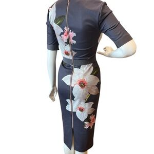 Ted Baker Bisslee Chatsworth Charcoal and Pink Floral Bodycon Dress