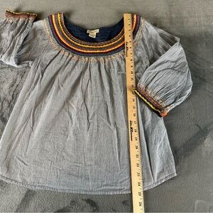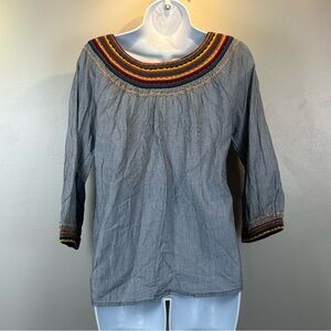 Lucky Brand Striped Peasant Top With Colorful Neck & Cuff Detail Bohemian