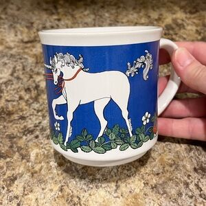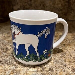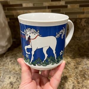 Vintage Unicorn Mug with Blue and White Design
