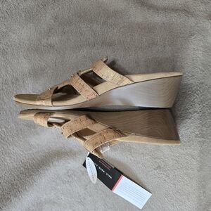 NWT slide on wedge sandals, adjustable velcro straps, one strap with adjustable buckle. 2" high wedge. Box not included