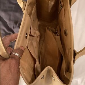Preowned Longchamp Pebbled Leather Tote Bag w/ Matching Zip Pouch | Tan Camel