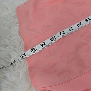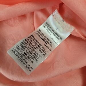 Chico's size 3 top, which converts to a US standard size XL. Measurements are in the photos. In great pre-owned condition. Subtle leaf embossed image on the fabric. 100% cotton. Wrinkle Resistant. In great pre-owned condition. 3/4 length button cuffed sleeves. Peach color. Button Down with a V neckline, buttons do not go to the neckline.