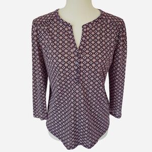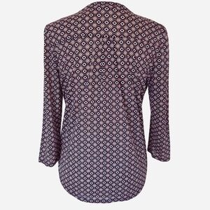 H&M boho geometric print top with 3/4 sleeves pink blue and white relaxed size S