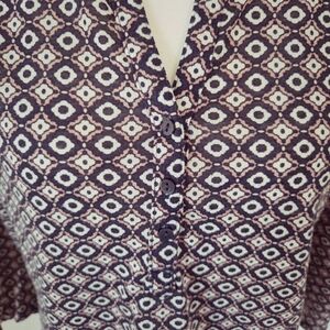 geometric print, boho vibes, retro print, pattern, h&m, 3/4 sleeve, long sleeve shirt, casual, comfy