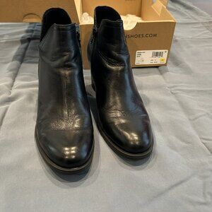Sleek black leather ankle boots. Side zipper for easy wear. Comfortable and stylish.