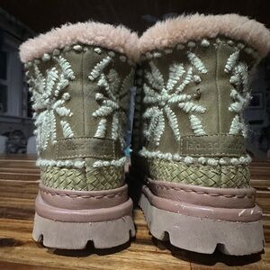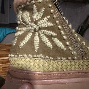 Setsu 4.0 reimagines our signature ankle boot with soft suede, bold detailing, and a modern chunky sole. Artisan-crafted with hand crochet accents or embroidered floral motifs, each style is finished with plush shearling for warmth and comfort. The lightweight rubber outsole adds flexibility and grip, perfect for colder days on the move.