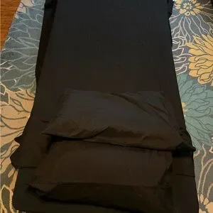 TWIN SIZE BLACK SHEET SET 2 PILLOWCASES NO STAINS OR FLAWS STORED IN CLOSET 🥱😴🛌 I do not even know if they were slept on! We are downsizing! I will be posting a lot more twin size bedding!!! Check out my other listings!!!
