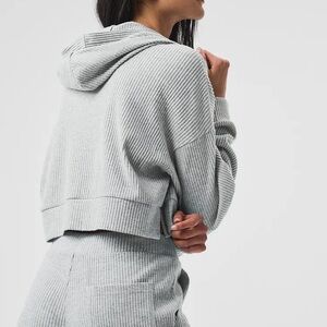 Alo Muse Gray Ribbed Soft Cropped Hoodie