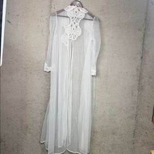 VINTAGE VICTORIA'S SECRET lace Sheer Lingerie Bridal Slip Dress Robe sz L