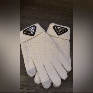 Elegant knit gloves by Prada. Soft and luxurious feel. Ideal for cold weather.