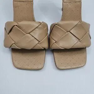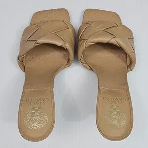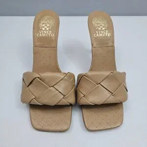 Vince Camuto Brelanie Braided Sandal Womens 8 Tan Woven Leather Mule Heels NEW