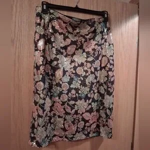 Vince Camuto Black Floral-Print Sequined Skirt Large, 17 Across Waist , 27 Long