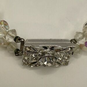 Vintage 7.25” Aurora Borealis Crystal Bracelet ✨ Double Strand AB Beads + Ornate Filigree Rhinestone Clasp Glam