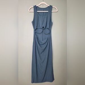 NWT Ribbed Criss-Cross Waist Cutout Midi Dress - Slate Blue Teal