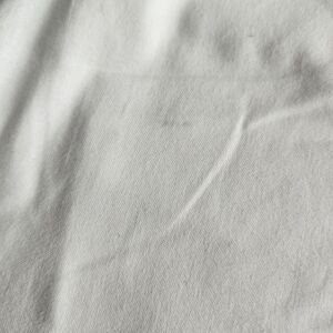 Pre-owned with flaws; a tiny hole near the waist cuff (see photos) and a light dust stain on the back, and tiny spot at the bottom hem ( see photos) needs spot cleaning otherwise in used condition. Zoom over ALL photos ALL photos they are part of the description.