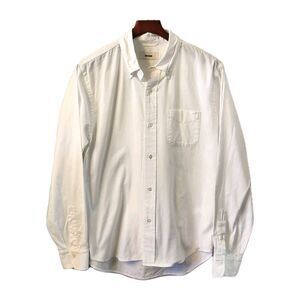 BUCK MASON Men's Oxford Shirt One Pocket Men's LARGE White 100% Cotton *Read