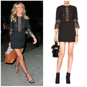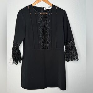 NWT! Self-Portrait Black Lace Insert Bell Sleeve Shift Dress. Size 10.