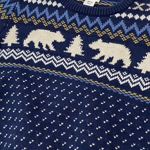 Crewcuts Boys Fair Isle Polar Bear Sweater Navy Blue 100% Cotton Size S 6-7