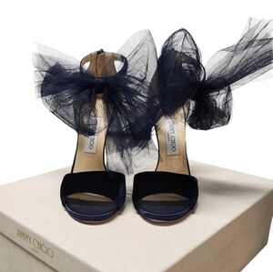 Jimmy Choo Navy Blue Heels with Tulle Detail