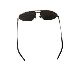 Elevate your look with these striking Saint Laurent aviator sunglasses. The sleek silver metal frame perfectly complements the dark, enigmatic lenses, offering a sophisticated shield from the sun. Designed with a classic aviator silhouette, these shades exude an air of effortless cool and timeless style. Perfect for a glamorous day at the races or adding a touch of luxury to your everyday adventures.