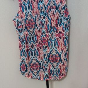 St. John's Bay Red Blue Geometric Sleeveless Top Blouse Size M Summer Chic