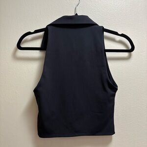 Sleek Babaton Contour Polo Tank from Aritzia in classic black. This fitted sleeveless top is made from Aritzia’s signature Contour fabric, known for its smooth, sculpting, second-skin feel. A versatile staple perfect for layering or wearing on its own.