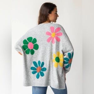 New Natural Life Lexie Intarsia Size S/M Oversized Flower Power Cardigan Sweater