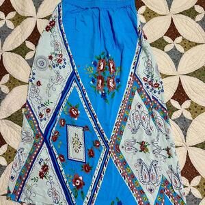 Blue boho floral cottagecore fairy patchwork quilted maxi skirt size M