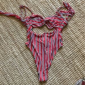 LOVERBIRD striped one piece bathing swim suit with cutout. New with tags. Small
